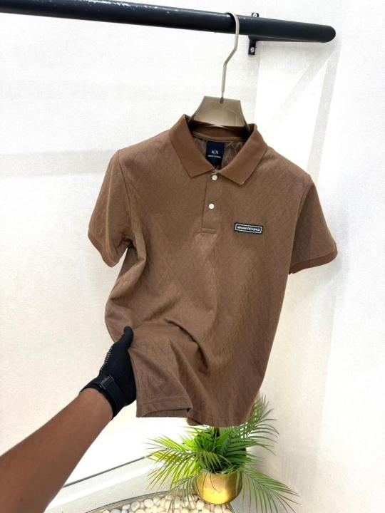 Home T-Shirts Arman_i Exchange Brown Monogram Premium Collar Neck Polo T-shirt With Brand Box Packing F3643-BR