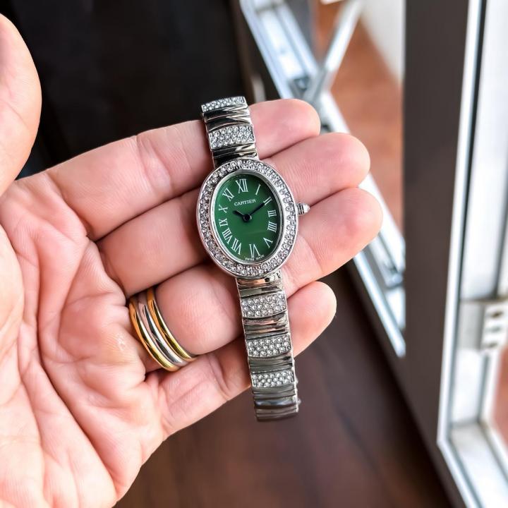 CARTIE_R LADIES SILVER GREEN WATCH