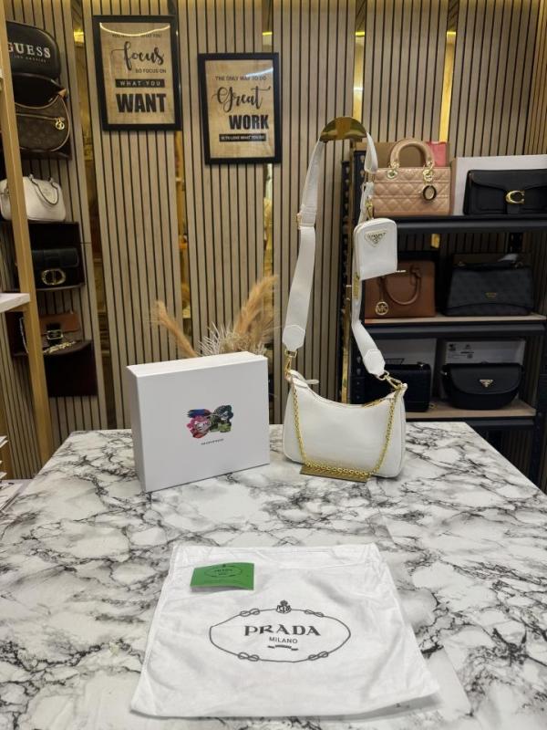 PRAD_A RE EDITION GLOSSY BAG WITH OG BOX DUST BAG CARD WHITE