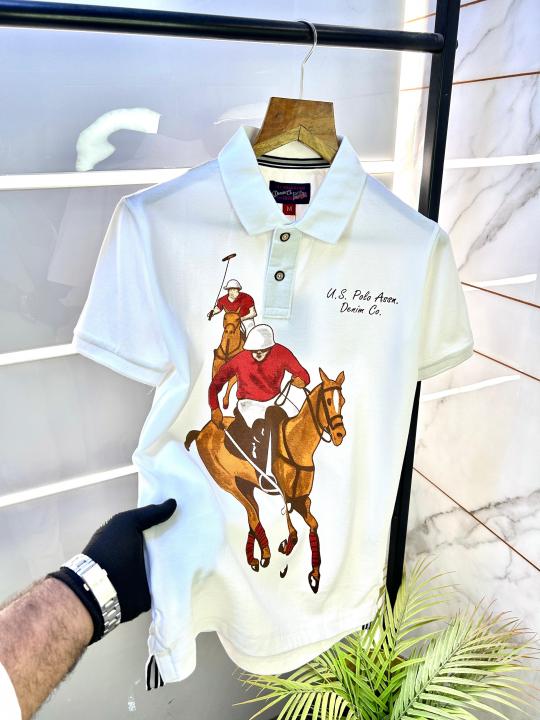 Home T-Shirts Us Polo White Printed Collar Neck Premium T-shirt F2845-WH
